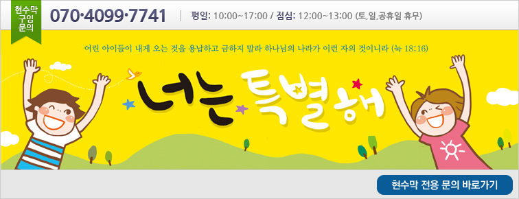 고객센터 : 책·음반·용품: 070-4018-4040 | 현수막·티셔츠: 070-4099-7741 | 콘텐츠·세미나·사역상담: 070-4099-7700