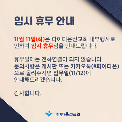 사역문의: 오전 10:00 - 오후 5:00 (수요일: 오전10:00~오후 3:30)