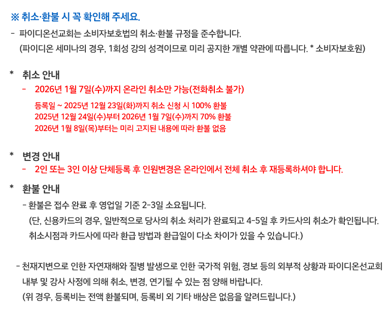 5. 등록비는 진행하는 시기와 장소, 진행하는 프로그램의 차이로 인해 매 기수 달라질 수 있습니다.
