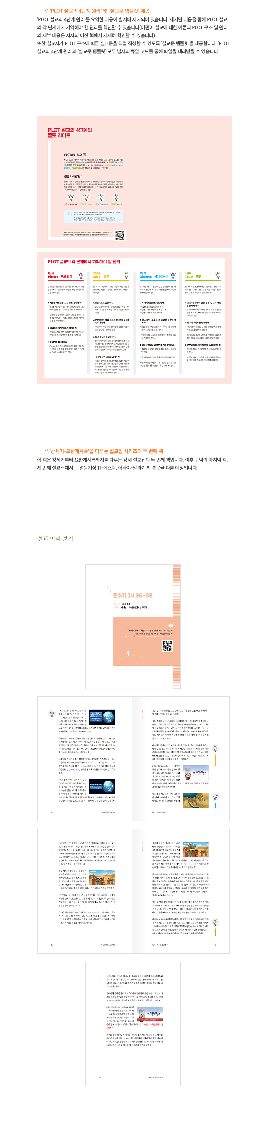 저자는 그의 첫 저서, 『어린이 설교, 어린이가 좋아하는 내러티브 강해』에서 주장한 설교 이론과 구체적인 방법론을 바탕으로, PLOT 구조를 활용한 어린이 강해 설교집을 시리즈로 출간하고 있습니다.