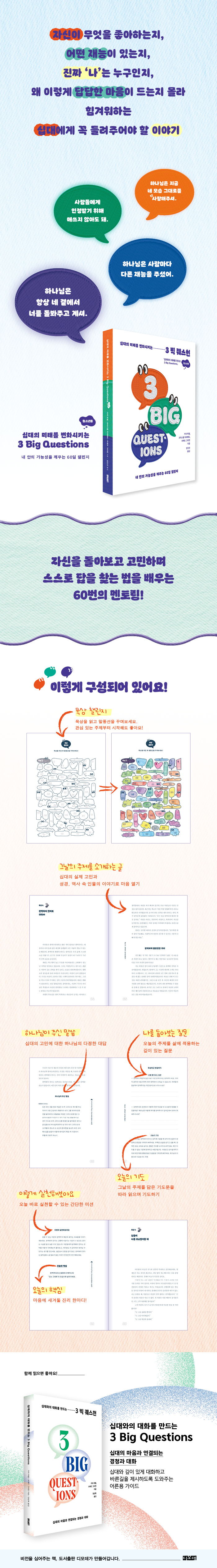 또한 이 책을 읽는 십대에게 도움을 주고 싶은 어른을 위한 가이드가 있다. 『십대와의 대화를 만드는 3 Big Questions』는 목회자와 교사와 부모에게 십대와 깊은 대화를 나누는 방법과 아이들을 가장 좋은 길로 인도하는 방법을 제시해줄 것이다.