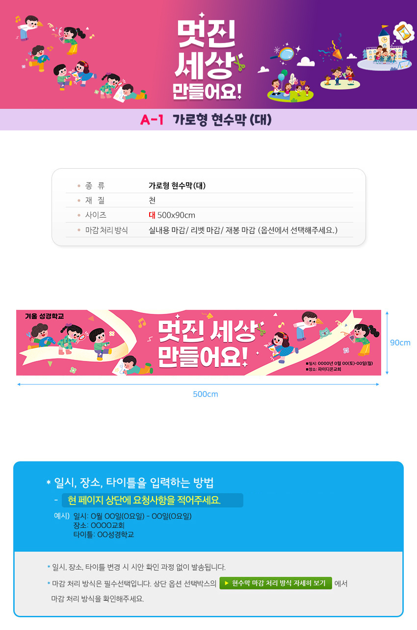 예. A-1형 현수막/일시/장소/OOOO성경학교