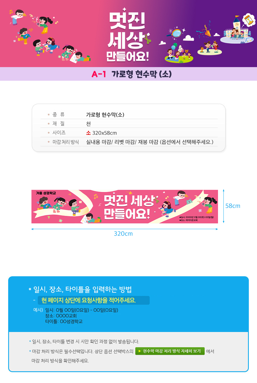 예. A-1형 현수막/일시/장소/OOOO성경학교