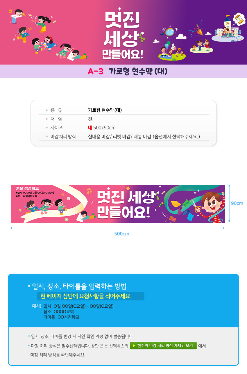 예. A-1형 현수막/일시/장소/OOOO성경학교