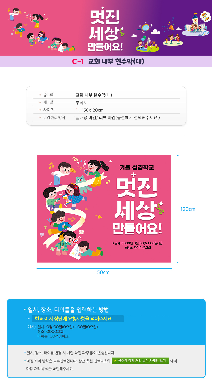 예. A-1형 현수막/일시/장소/OOOO성경학교