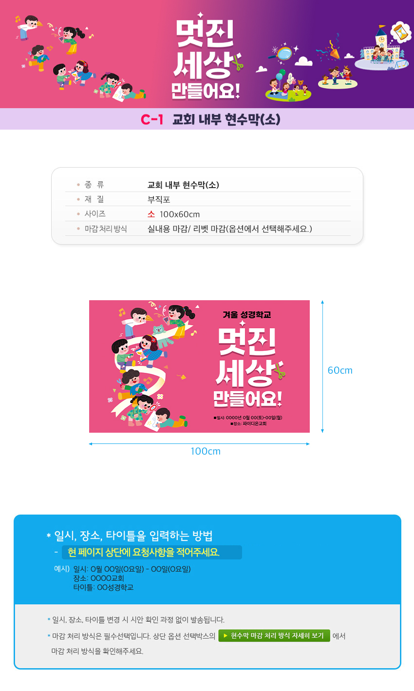 ※ 여름 성경학교 현수막(강단데코_H형) / 겨울 성경학교 현수막 (강단데코_D형) 상품들 구매하실 때