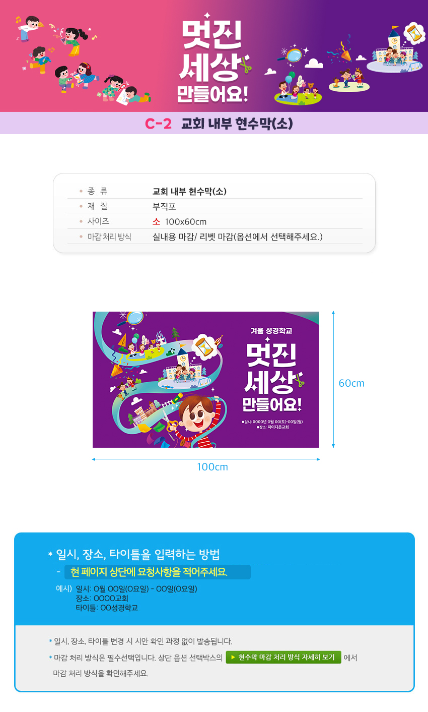 가로형, 배너형, 교회 일정 홍보형 현수막 상품을 구매하시면 됩니다.