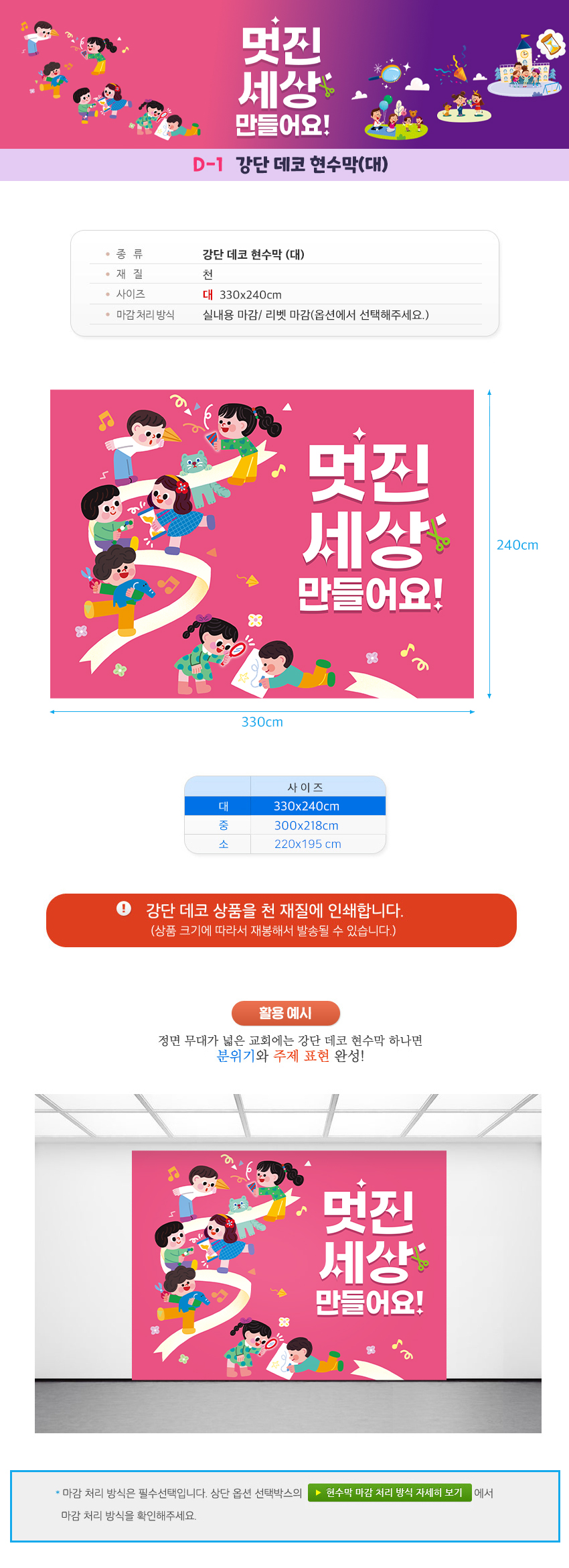 ※ 여름 성경학교 현수막(강단데코_H형) / 겨울 성경학교 현수막 (강단데코_D형) 상품들 구매하실 때