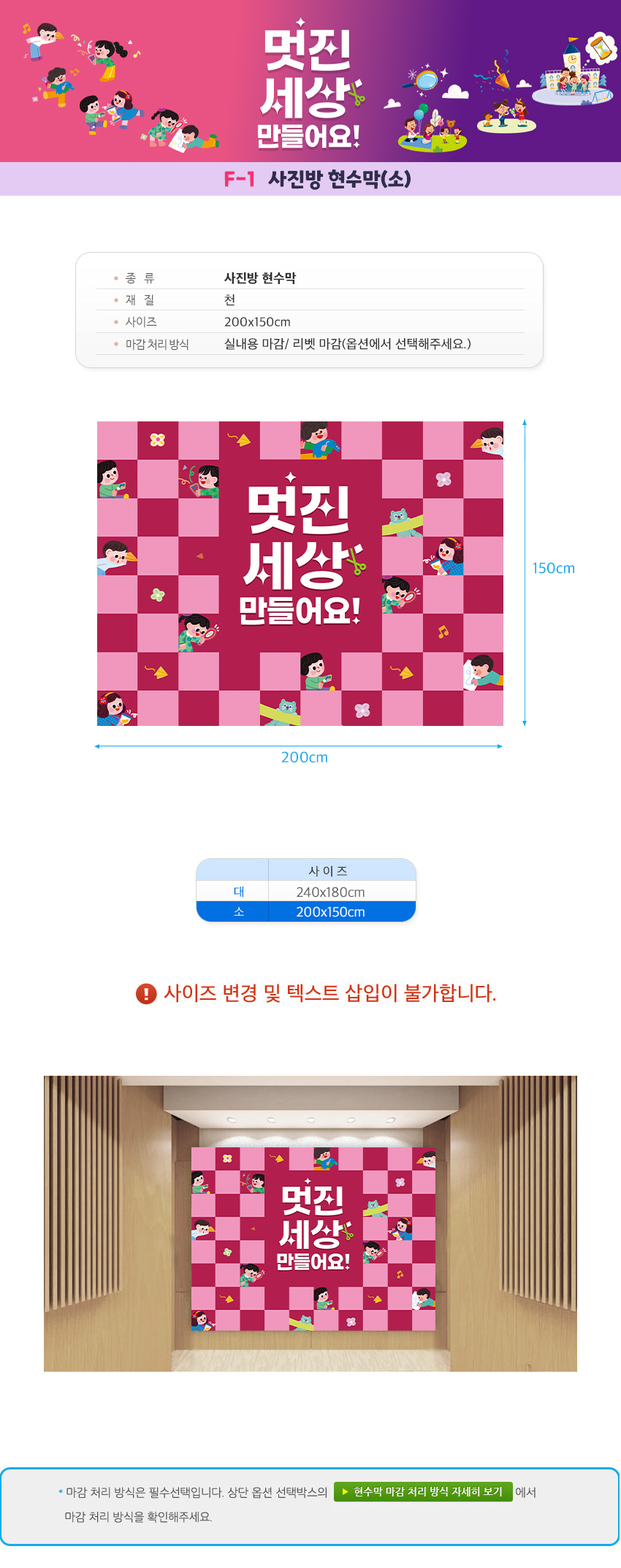 현수막의 제작특성상 맞춤제작형태 이므로, 반품이 되지 않습니다. 신중하게 결정하여 주시기 바랍니다.