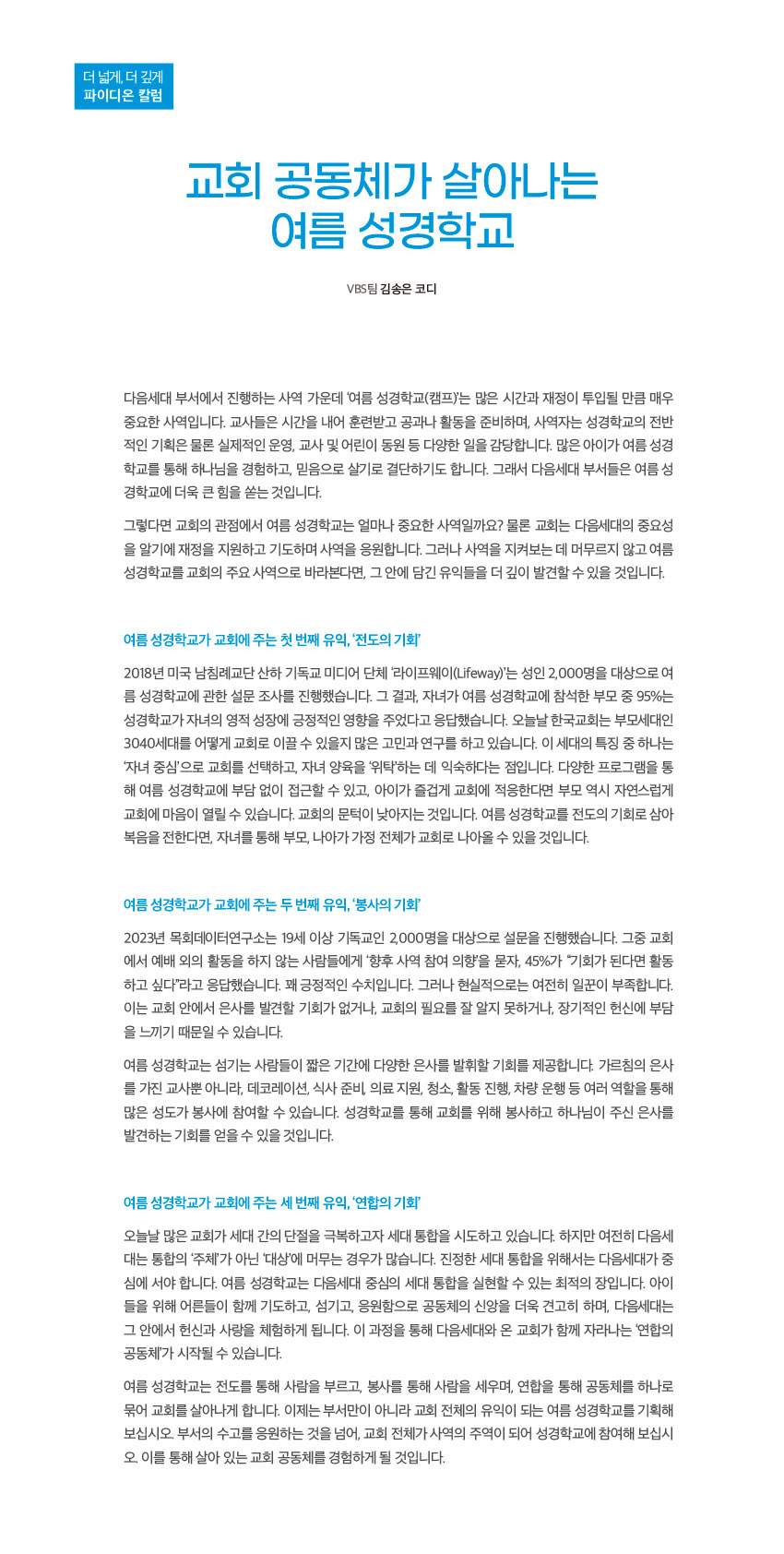 [2025년 6월] 교회 공동체가 살아나는 여름 성경학교 - VBS팀 김송은 코디